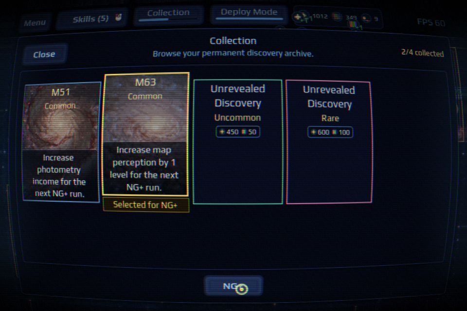 In the late stages of the game, a prestige mode becomes available. Your current expedition comes to an end, but your collection of unique discovery cards is kept forever. Choose one of the cards for your next run — it will can change your strategy in the new playthrough!